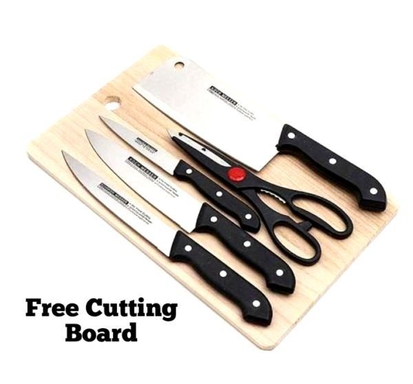 Complete 6in1 Knife Set with Wooden Chopping Board ? Ideal for Food Preparation