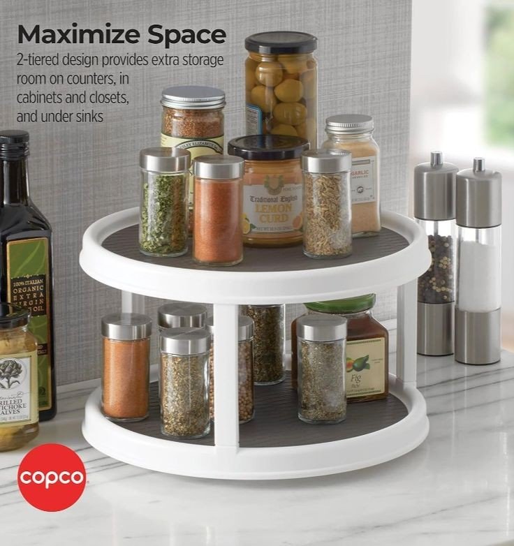 Rotating Double Layer Tray ? Ideal for Spices, Snacks, Bathroom, and Office Use