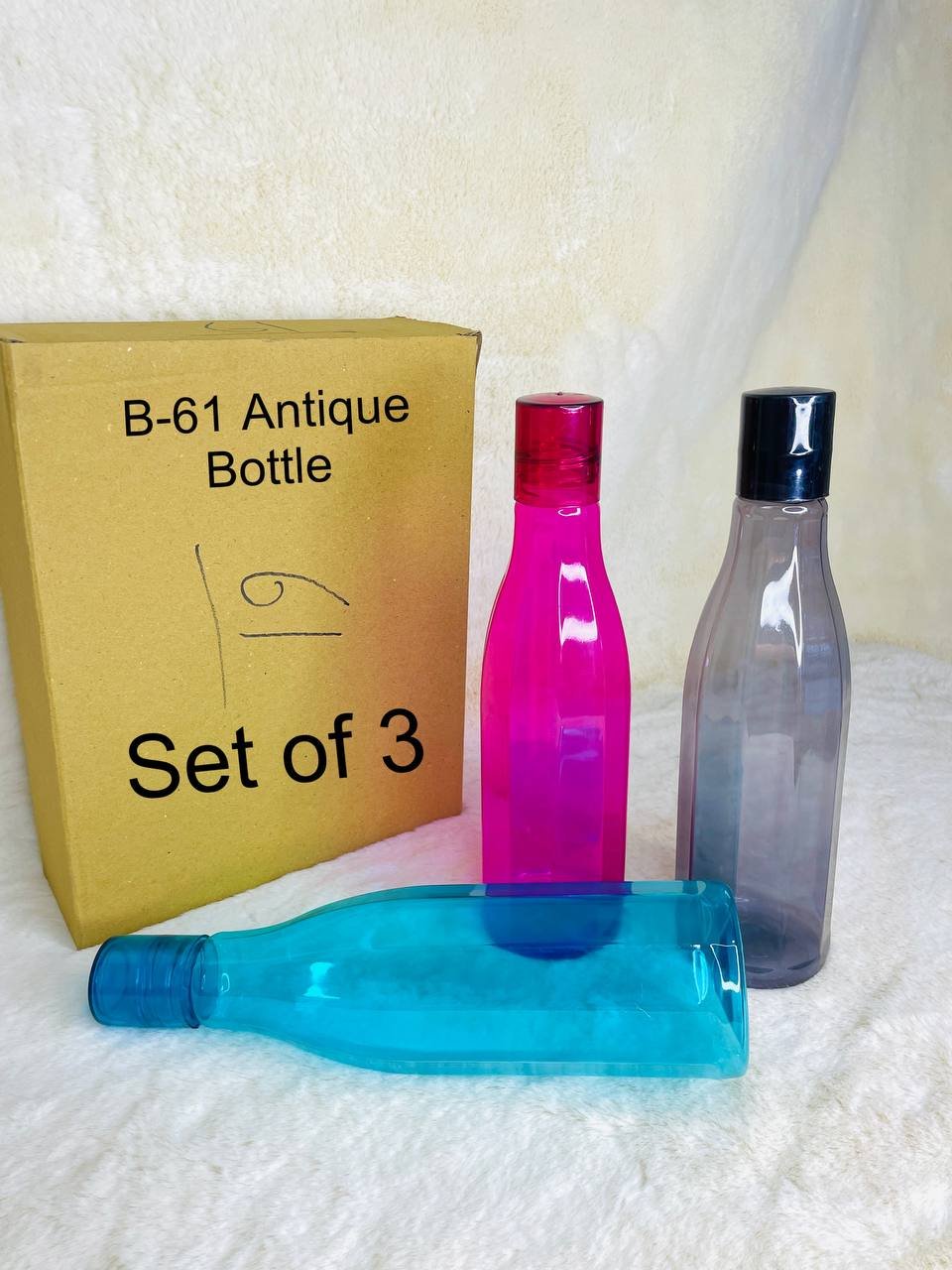 The B-61 Antique Bottle Set of 3 showcases a classic, vintage-inspired design perfect for elevating your drinkware collection. Ideal for serving or storing water, juices, or beverages at home, events, or in the office.