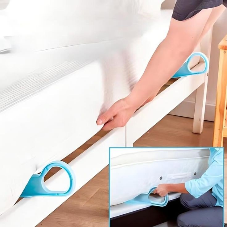 The Plastic Mattress Lifter Tool is a practical and ergonomic device designed to assist in making beds more efficiently. It simplifies the process of lifting and holding the mattress, allowing for easier tucking of bedsheets and bed skirts.