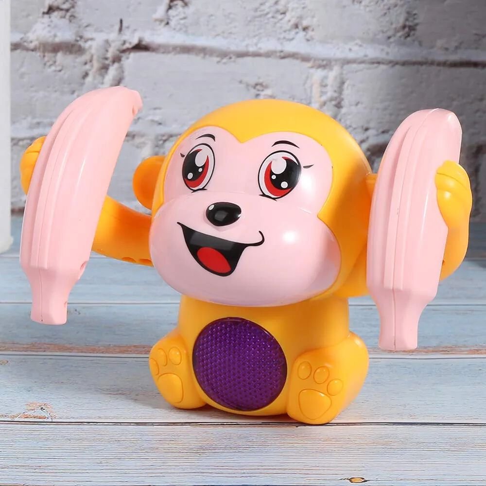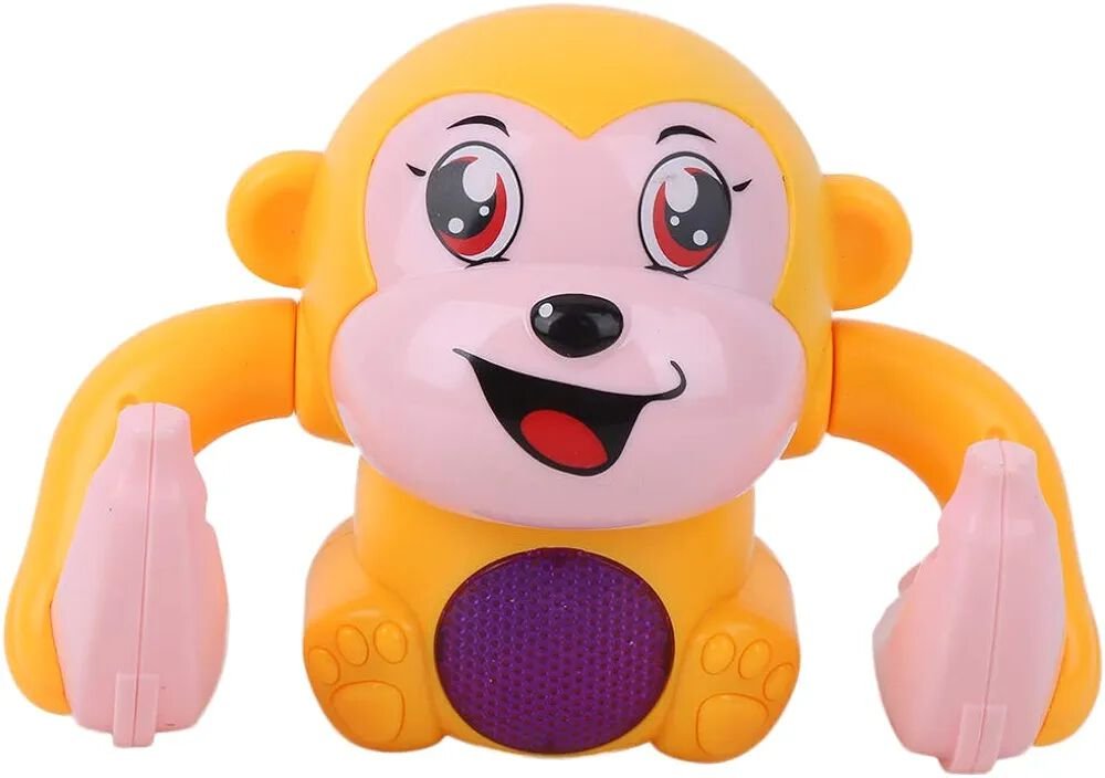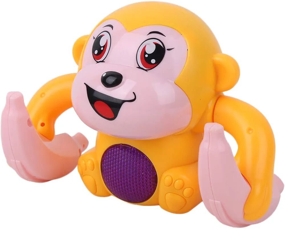 Watch the Electric Tumbling Monkey flip, roll, and light up while playing cheerful music! This entertaining toy keeps kids engaged, encourages movement, and brings loads of fun with its playful monkey antics.