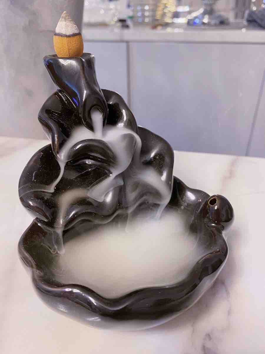 Crafted in a graceful hand-lotus motif, this backflow incense burner uses special “smoke waterfall” cones. When lit and placed atop the lotus held by the hand, the dense smoke flows downward through the sculpt, creating a serene waterfall effect. Perfect for meditation corners, altars, or as a calming d?cor statement.