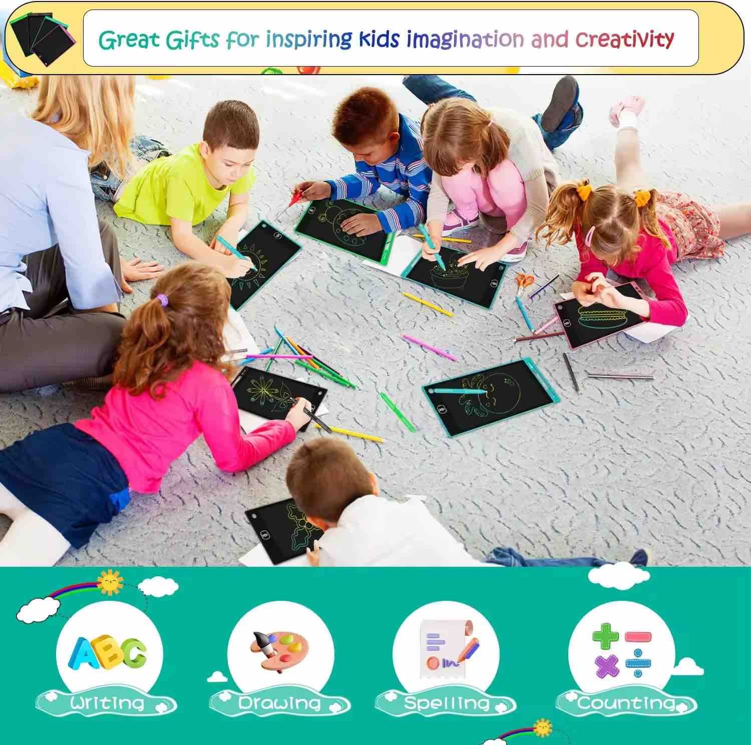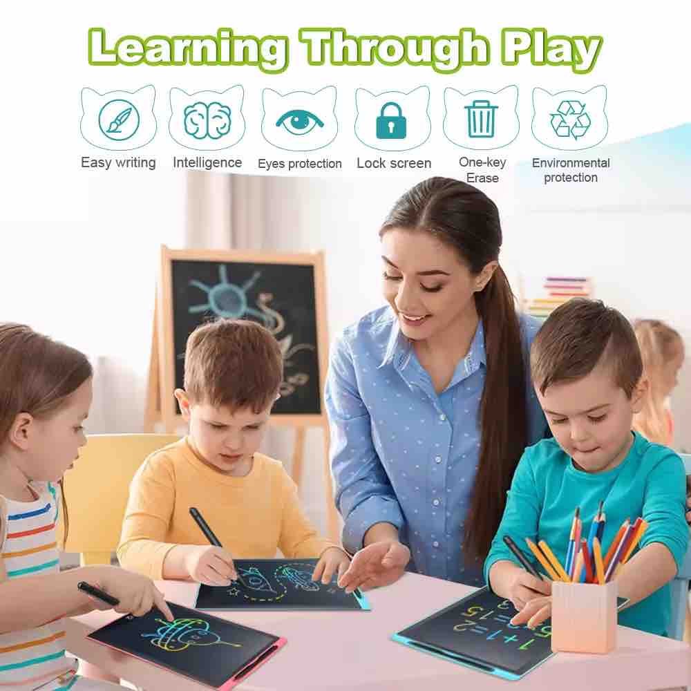 Large 12-inch LCD pad for endless drawing, doodling, and note-taking. Erasable, eye-friendly, and perfect for kids, students, or office use.