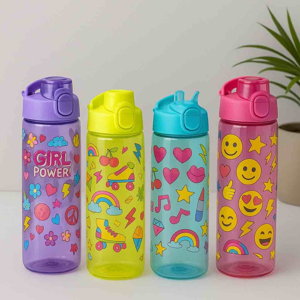These Multi-Colours Printed Sipper Bottles are made from high-quality PP plastic and feature vibrant prints for a fun look. Lightweight and durable, they?re perfect for school, gym, or outdoor use with a convenient sipper lid.