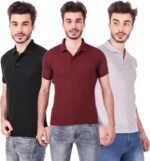 One-H Men’s Polo Neck Short Sleeve Casual Tshirt Combo of Maroon, Black, Grey colors (Pack of 3)