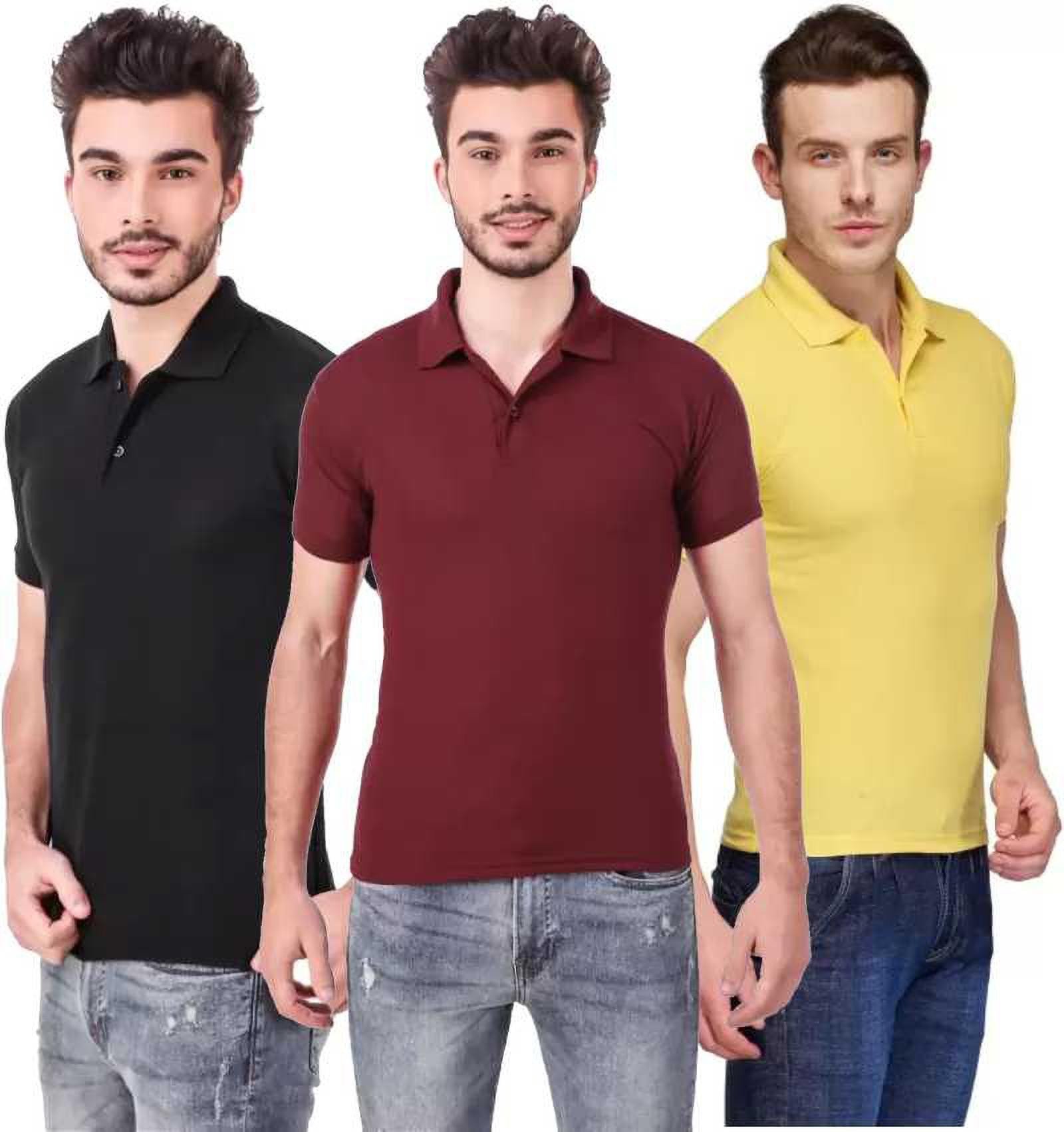 One-H Men’s Polo Neck Short Sleeve Casual Tshirt Combo of Maroon, Black, Yellow colors (Pack of 3)