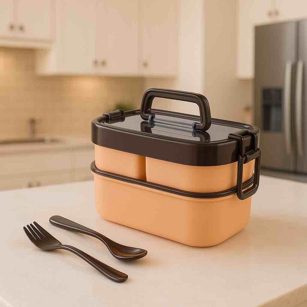Brings convenience and style to your meals with its stackable two-tier design. Offering generous capacity and smart organization, it keeps dishes separate, fresh, and mess-free. With sturdy handles and airtight lids, it?s perfect for work, school, picnics, or travel?combining practicality with a sleek, modern loo
