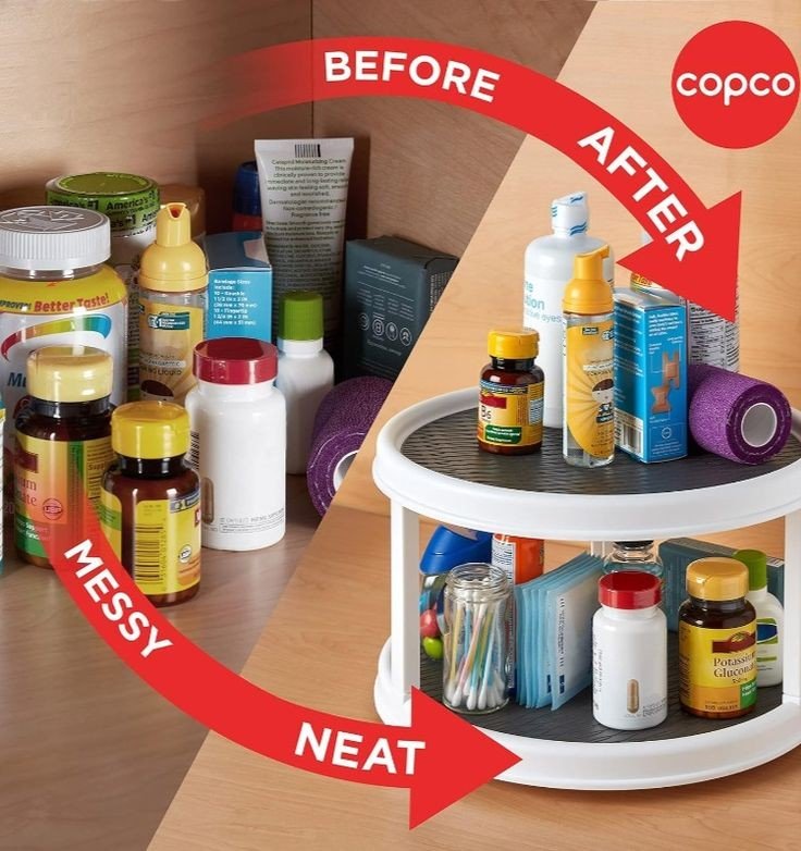 Rotating Double Layer Tray ? Ideal for Spices, Snacks, Bathroom, and Office Use
